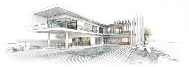 This is a wonderful example of my hatch style, with a hint of colour on the glass and the pool with a few trees to help balance the image.